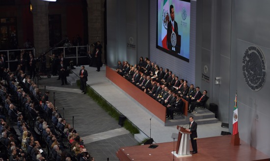 Ante gobernadores, gabinete legal y ampliado, legisladores, dirigentes partidistas, cuerpo diplomático acreditado en el país e invitados, el mandatario mexicano sostuvo que el gobierno de la República seguirá trabajando para consolidar y seguir reduciendo los homicidios, secuestros, extorsiones y robos.