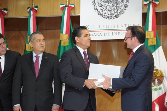 Ante los presidentes de la Mesa Directiva, Silvano Aureoles Conejo y de la Junta de Coordinación Política de la Cámara de Diputados, Manlio Fabio Beltrones Rivera, el secretario dijo que el documento contiene los elementos para impulsar la puesta en acción de las reformas estructurales aprobadas por el Congreso.