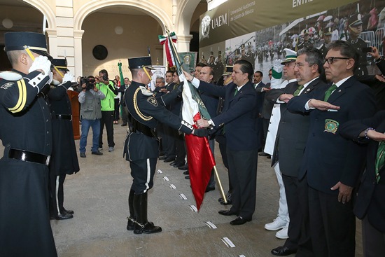 A los integrantes de ambas agrupaciones les recordó que representan a 70 mil alumnos y 13 mil trabajadores universitarios y deben honrar, portando con orgullo y gallardía los símbolos institucionales, a la Universidad Autónoma del Estado de México, institución casi bicentenaria.