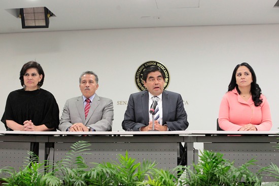 En conferencia de prensa, el Presidente de la Mesa Directiva, Miguel Barbosa Huerta; el vicepresidente Arturo Zamora Jiménez; y las secretarias Lilia Guadalupe Merodio Reza y María Elena Barrera Tapia, destacaron que este acto que reunirá a los representantes de la República busca fortalecer el Federalismo.
