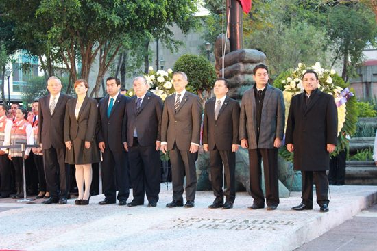 Mancera Espinosa montó guardia junto con el delegado en Cuauhtémoc, Alejandro Fernández; el presidente del Tribunal Superior de Justicia del Distrito Federal, Edgar Elías Azar; el secretario de Gobierno, Héctor Serrano; el presidente de la Comisión de Gobierno de la ALDF; Manuel Granados; y el asambleísta Jorge Gaviño.