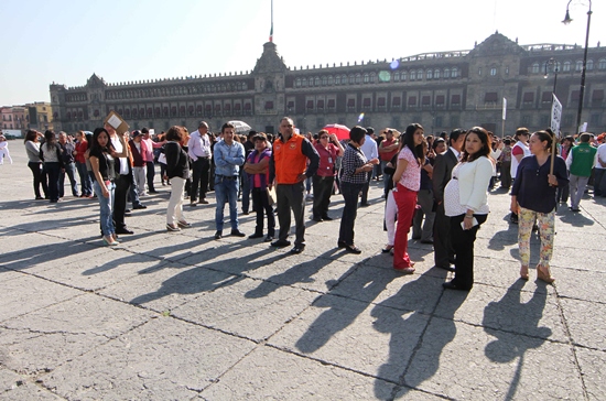 En punto de las 10:00 horas la alerta sísmica se escuchó y los trabajadores del Gobierno del Distrito Federal (GDF) comenzaron a desalojar el edificio sede, para aglutinares en la plancha del Zócalo capitalino.