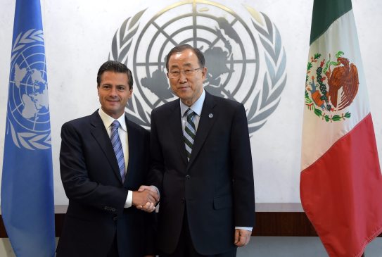 Peña Nieto se reunió en privado con Ban Ki-moon, con el objetivo de fortalecer la relación entre México y el sistema de las Naciones Unidas, así como intercambiar puntos de vista sobre los retos globales que enfrenta la humanidad.