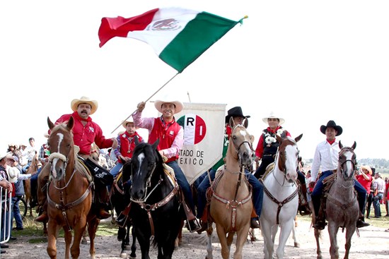 Entre el sonido de las herraduras sobre el camino, y con la bandera nacional ondeando sobre su brazo derecho, Iriarte Mercado guió este encuentro en donde mujeres y hombres de todas las edades reiteraron su orgullo de ser mexicanos y priístas.