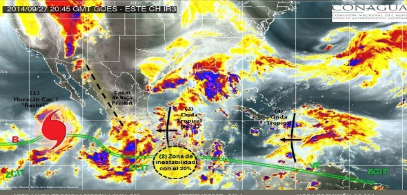 Su circulación aportará humedad que puede ocasionar lluvias fuertes y oleaje moderado en la zona de costa de Baja California Sur, detalló el organismo en su página de Internet.