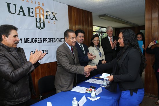 La Fundación UAEMéx entregó 11 becas de titulación, por un monto de 33 mil 110 pesos, a egresados de las facultades de Economía, Odontología y Ciencias de la Conducta, así como del Centro Universitario UAEM Temascaltepec; de ellos, dos se titularon por Tesis, tres por Aprovechamiento Académico y seis por Examen General de Egreso de la Licenciatura.