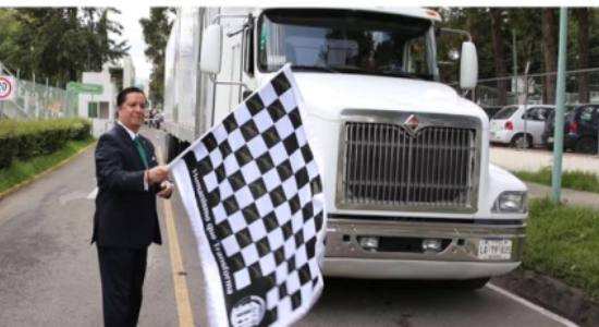 El rector de la Universidad Autónoma del Estado de México, Jorge Olvera García, dio el banderazo de salida al tráiler con más de 45 mil artículos, entre alimentos e implementos de limpieza e higiene personal, resultado de la colecta emergente a la que convocó esta casa de estudios para apoyar a los damnificados del Huracán Odile, en Baja California Sur.