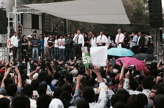 El grito de guerra de los estudiantes del Poli, «¡Huelum! ¡Huelum! «, sonó en Bucareli, tras recibir oficialmente la respuesta de las autoridades federales.
