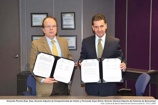 El Banco Nacional de Comercio Exterior (Bancomext) y el Fondo de Información y Documentación para la Industria (INFOTEC), firmaron un Convenio de Colaboración para coordinar esfuerzos y capacidades para la publicación y difusión de información de Comercio Exterior.