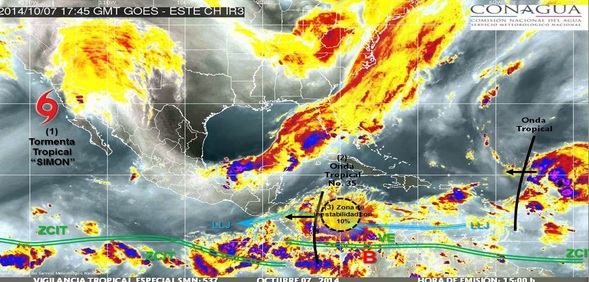 Advirtió que la circulación de la tormenta tropical Simon generará lluvias fuertes a intensas en la Península de Baja California y el noroeste del territorio nacional.