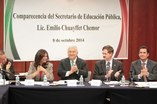 El funcionario compareció ante las comisiones de Educación, de Cultura y de Juventud y Deporte, que presiden los senadores Juan Carlos Romero Hicks, Blanca Alcalá Ruiz y Carlos Alberto Puente Salas, como parte de la Glosa del Segundo Informe de Gobierno del presidente de la República, Enrique Peña Nieto.