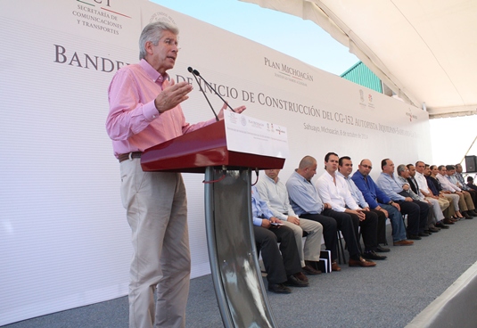 Respecto del inicio de obra de la Autopista Jiquilpan-Sahuayo-La Barca, el Secretario Ruiz Esparza dijo que se avanza en el Plan Michoacán y en los compromisos del Presidente de la República, Enrique Peña Nieto, quien con gran sensibilidad trabaja en los puntos más importantes que debe tener nuestro país para convertirlo en una plataforma logística.