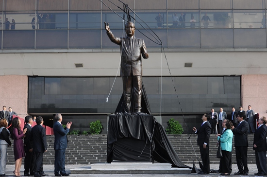 La figura de bronce con un peso de más de una tonelada y una altura de tres metros, se encuentra ubicada en las escalinatas frente al Salón Protocolo del edificio “C” del Palacio Legislativo de San Lázaro.