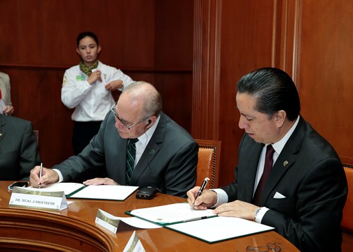 La Universidad Autónoma del Estado de México, representada por el rector Jorge Olvera García, y la Universidad del Norte de Texas, por su presidente, Neal Smatresk, signaron el Acuerdo Específico de Investigación Fondo Semilla, que permitirá la generación de avances en áreas como las Ciencias Agrícolas, Ciencias Naturales y Exactas, Ciencias de la Salud, Ciencias Económico-Administrativas, Ingeniería y Tecnología, Ciencias de la Educación y Humanidades.