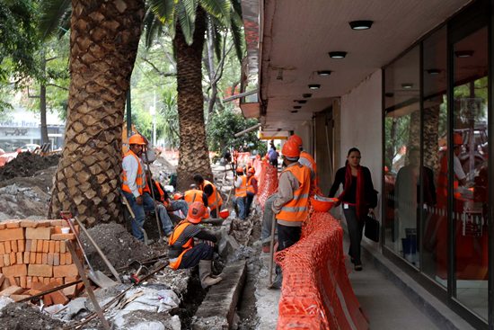 En un comunicado, la dependencia explicó que el tramo tiene 95 por ciento de instalaciones subterráneas renovadas, 98 por ciento de pavimento en arroyo vehicular terminado, y 80 por ciento de avance en la construcción de banquetas y colocación de granito.