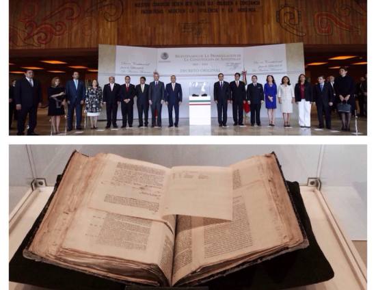 Los presidentes de la Cámara de Diputados, Silvano Aureoles, y de la Junta de Coordinación Política, Manlio Fabio Beltrones, encabezaron una guardia de honor ante el ejemplar original de la Constitución de Apatzingán.
