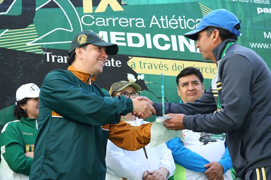 Luego de correr la prueba de cinco kilómetros y acompañado por el director general del Instituto de Seguridad Social del Estado de México y Municipios, Delfino Reyes Paredes, así como por la directora de la Facultad de Medicina, Lilia Patricia Bustamante Montes, el rector inauguró el segundo consultorio médico de dicho instituto en la UAEM.
