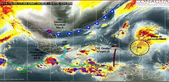 El Sistema Nacional de Protección Civil (Sinaproc) informó que la depresión tropical 21-E, en el Océano Pacífico, podría convertirse en la tormenta tropical Vance en las próximas horas, lo que provocará lluvias en Oaxaca y Guerrero.