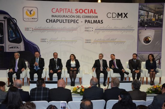 Con la sustitución de 103 unidades obsoletas por 85 autobuses nuevos, el Jefe de Gobierno del Distrito Federal, Miguel Ángel Mancera Espinosa, puso en marcha el Corredor Chapultepec-Palmas que brindará un servicio moderno, eficiente, limpio y seguro.