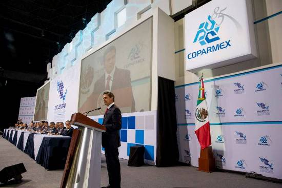 Luego de que el líder de la Coparmex planteó un pacto para la seguridad, la justicia y el combate a la corrupción, Peña Nieto dijo: “lo felicito por su mensaje, un mensaje que sin duda conlleva compromiso y disposición de sus representados para trabajar en favor de México, en unidad, en una actitud constructiva, positiva».