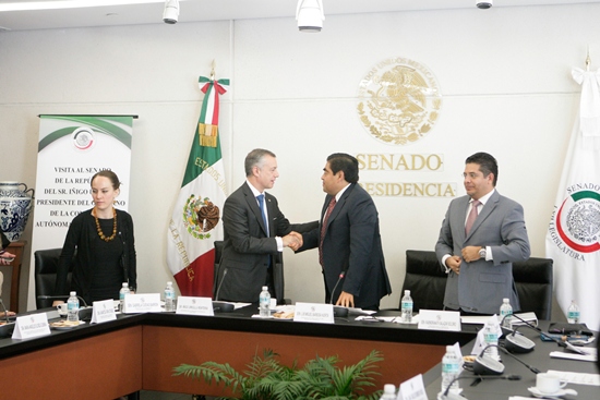 El presidente del Senado de la República, Miguel Barbosa Huerta, acompañado de los senadores Gabriela Cuevas Barron, presidenta de la Comisión de Relaciones Exteriores; Rabindranath Salazar Solorio, presidente de la Comisión de Relaciones Exteriores Europa, y Luz María Beristain Navarrete, recibieron la visita del señor Iñigo Urkullu Rentería, presidente de la Comunidad Autónoma del País Vasco.