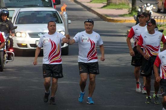 La antorcha continuará su recorrido en el Estado de México, el representante del Instituto Municipal de Cultura Física y Deporte de Toluca (Imcufidet), Cristian Valdez, se encargó de recoger el fuego ya encapsulado para llevarlo a la ciudad de Toluca.
