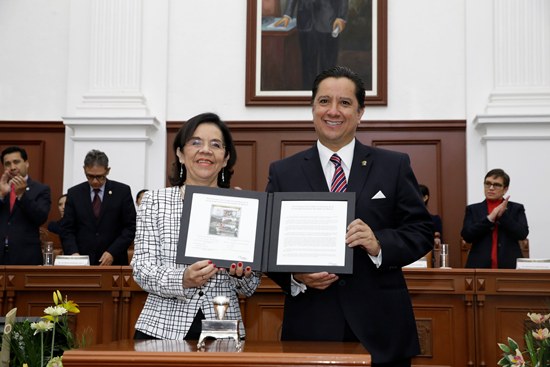 En este marco, el rector entregó un reconocimiento al Doctor Honoris Causa por esta casa de estudios, Leopoldo Flores; “porque sus trazos han logrado proyectar internacionalmente los espacios universitarios y volverlos símbolos de nuestro tiempo”.
