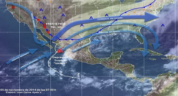 La dependencia dio a conocer que, a las 03:00 horas, la depresión tropical Vance se localizaba a 70 Kilómetros al noroeste de Islas Marías, Nayarit, y a 150 kilómetros al sur-suroeste de Mazatlán, Sinaloa.
