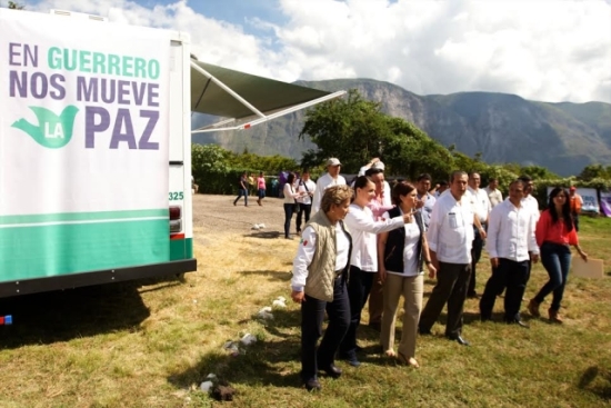 En la entrega de ayudas de Sedesol-IMSS Prospera-CDI 10 unidades médicas móviles en la región de La Montaña, en beneficio de 77 mil personas de 123 localidades de 10 municipios, resaltó que la paz exige la unión de todos y el trabajo coordinado.