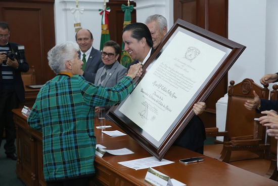 En el Aula Magna “Lic. Adolfo López Mateos” del Edificio de Rectoría, donde se dieron cita el presidente de la Fundación UAEMéx, Humberto Benítez Treviño; el Doctor Honoris Causa por la UAEM, Leopoldo Flores Valdés, y el presidente de la Fraternidad Institutense, César Pavón Salinas, el rector subrayó la labor docente de la decana.