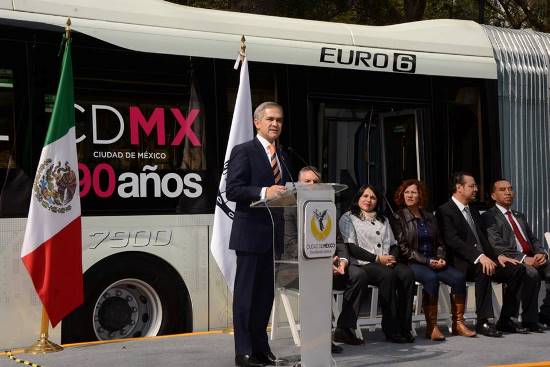 En su oportunidad, el director del Metrobús, Guillermo Calderón Aguilera, informó que se aumenta la flota en 36 autobuses biarticulados y 133 articulados operando en la avenida Insurgentes.