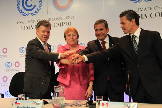 La declaración fue suscrita por los presidentes de México, Enrique Peña Nieto; Colombia, Juan Manuel Santos; Perú, Ollanta Humala, y Chile, Michell Bachelet, en el marco de la Cumbre Mundial sobre el Cambio Climático que se lleva a cabo en esta capital.