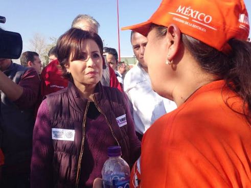 Al supervisar acciones de rehabilitación realizados en el marco de la Cruzada Nacional contra el Hambre en el mencionado deportivo, acompañada por el Secretario de Desarrollo Social de Chihuahua, Rafael Servando Portillo Díaz, representante del gobernador César Duarte Jáquez, y por el presidente municipal de Ciudad Juárez, Enrique Serrano Escobar, la Titular de la Sedesol platicó con los derechohabientes de los programas sociales que asisten a estas instalaciones de forma frecuente a practicar fútbol rápido, básquetbol, box, volibol y fútbol americano.