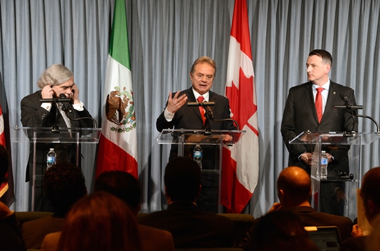 Los secretarios de Energía de México, Pedro Joaquín Coldwell, y de Estados Unidos, Ernest Moniz, así como el ministro de Recursos Naturales de Canadá, Greg Rickford, discutieron sobre la colaboración en materia de datos y estadísticas energéticas públicamente disponibles.