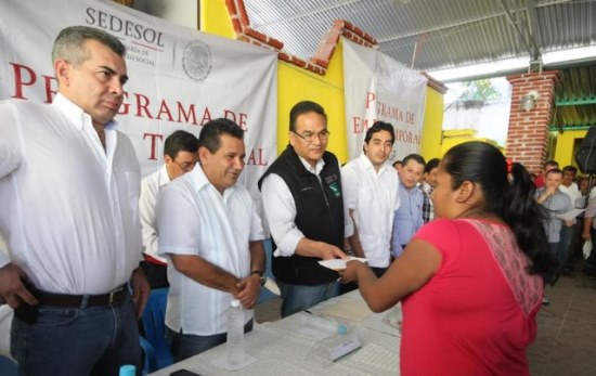 “La única manera de que las comunidades vivan en armonía y trabajen solidariamente es impulsando su actividad productiva”, afirmó el Subsecretario de Desarrollo Comunitario y Participación Social de la Secretaría de Desarrollo Social (Sedesol), Javier Guerrero García, al encabezar la entrega de apoyos del Programa de Empleo Temporal (PET) a 772 familias que viven en diversas comunidades del municipio.