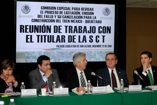 Al comparecer ante la Comisión Especial para la revisión de la licitación, emisión del fallo y cancelación de la construcción del tren México-Querétaro, informó que el pasado 1 de diciembre se dio a conocer al consorcio chino que no se firmaría el contrato y hasta la fecha no han recibido notificación de inconformidades.