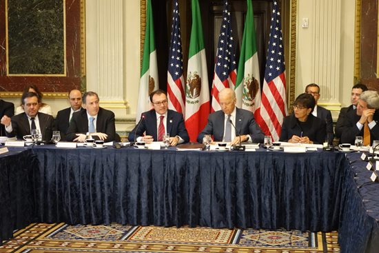 Biden y Videgaray encabezaron el segundo encuentro del DEAN en el Edificio Ejecutivo Eisenhower, aledaño a la Casa Blanca, que incluyó a la totalidad del gabinete económico de la administración del presidente Barack Obama.