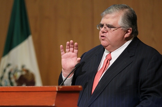 El embajador de Alemania en México, Viktor Elbling, y el gobernador del Banco de México, Agustín Carstens, se reunieron para intercambiar puntos de vista sobre la situación de la zona euro, inversiones alemanas en el país y temas de interés político.