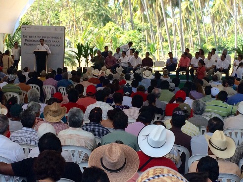 En este municipio, el funcionario federal visitó el Agro clúster de palma de coco que beneficia a 2 mil 500 productores y en el que operan 12 empresas y asociaciones civiles.