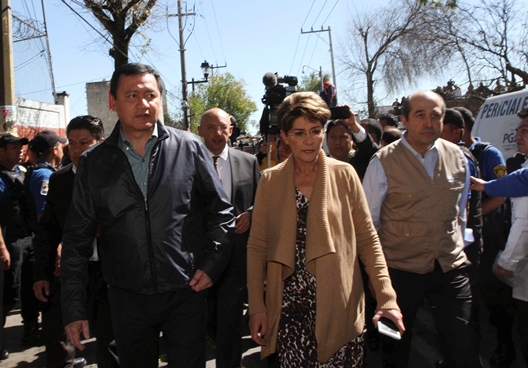 Antes, Mercedes Juan acudió al lugar del accidente junto con el secretario de Gobernación, Miguel Ángel Osorio Chong, y jefe del gobierno capitalino, Miguel Ángel Mancera.