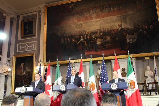 La reunión de este sábado marcó la sesión final de un encuentro de dos días en el que, además de Meade, participó el secretario estadunidense de Estado, John Kerry, y el canciller canadiense John Baird.