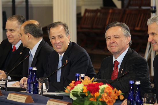 La delegación mexicana estuvo integrada, además del canciller, por el subsecretario para América del Norte, Sergio Alcocer, y los embajadores de México en Estados Unidos y Canadá, Eduardo Medina Mora y Francisco Suárez Dávila, respectivamente.