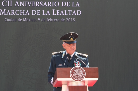 Ante el presidente Enrique Peña Nieto, los titulares de las cámaras de Diputados y de Senadores, así como el presidente de la Suprema Corte de Justicia de la Nación, el secretario expresó que la lealtad es la génesis de las fuerzas armadas, aunque señaló que ésta no es exclusiva del Ejército, “es un valor universal de civiles y militares”.