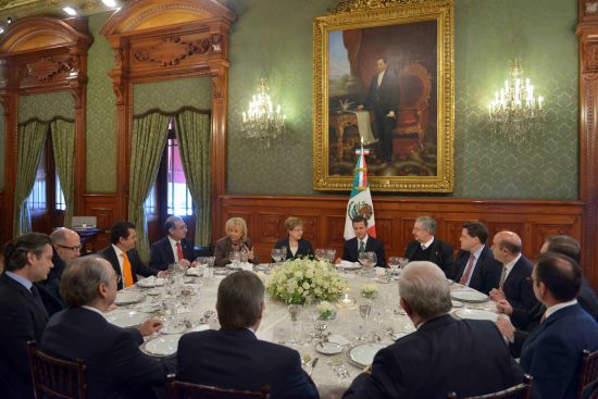 El Primer Mandatario estuvo acompañado por el Secretario de Hacienda y Crédito Público, Luis Videgaray Caso; el Procurador General de la República, Jesús Murillo Karam; el Jefe de la Oficina de la Presidencia, Aurelio Nuño Mayer, y por el Consejero Jurídico de la Presidencia, Humberto Castillejos Cervantes.