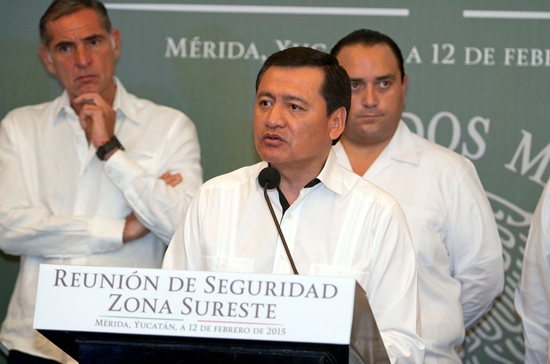 Osorio Chong estuvo acompañado de los titulares de las dependencias del gabinete de seguridad y los mandatarios de Yucatán, Rolando Zapata Bello; de Chiapas, Manuel Velasco Coello; de Campeche, Fernando Ortega Bernés; de Oaxaca, Gabino Cué Monteagudo; Quintana Roo, Roberto Borge Angulo, y de Tabasco, Arturo Núñez Jiménez.