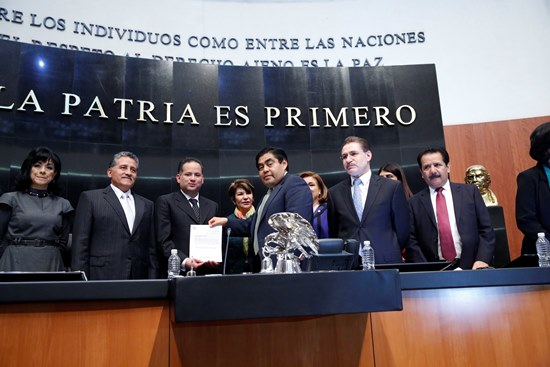 Posteriormente, el presidente de la Mesa Directiva, Miguel Barbosa Huerta, tomó la protesta de Nieto Castillo, en esta función que tendrá como reto principal la justicia electoral del país.