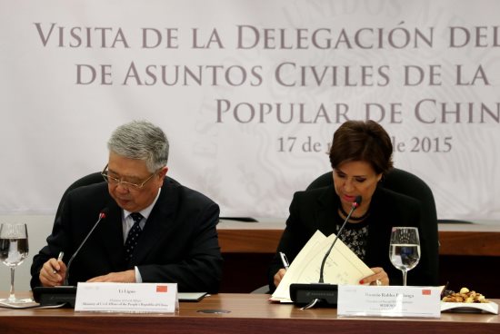 El gobierno del presidente Enrique Peña Nieto fortalece la relación de cooperación con la República Popular China para convertirla en una asociación estratégica integral, en el marco de un México con Responsabilidad Global, afirmó la Secretaria de Desarrollo Social, Rosario Robles Berlanga, al suscribir con el ministro de Asuntos Civiles de la República Popular China, Li Liguo, un Acuerdo de Cooperación Técnica sobre Asistencia y Bienestar Social.