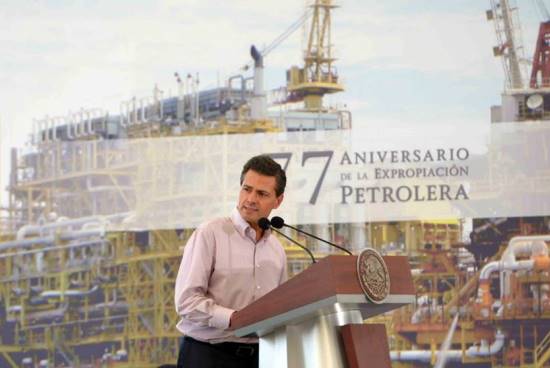 Al encabezar en la Terminal Marítima de Dos Bocas el festejo por el 77 Aniversario de la Expropiación Petrolera, el mandatario dijo que esté modificación legal permite a Pemex responder de manera más eficiente a la coyuntura de los precios bajos de los hidrocarburos.