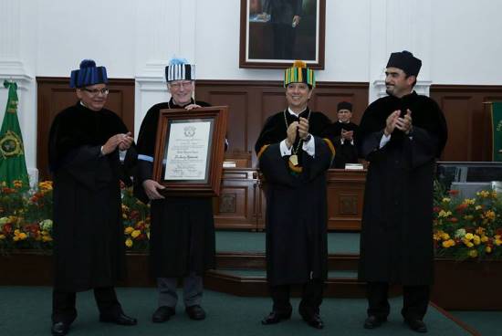 Para reconocer sus aportaciones a la Geografía Física y la Geografía Económica, así como en el ámbito de la Planeación, y por su labor para el fortalecimiento de la vinculación entre la Universidad Autónoma del Estado de México y la Universidad de Varsovia, Polonia, el rector Jorge Olvera García entregó el Doctorado Honoris Causa a Jerzy Makowski.