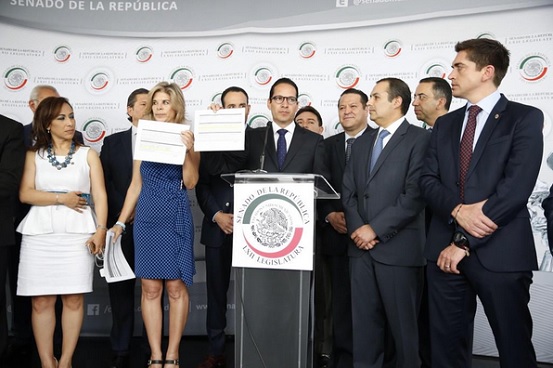 “No solamente se ha negado reiteradamente el candidato del PRI a hacer públicas sus declaraciones, sino que el día de ayer el licenciado Camacho, el presidente del PRI, fue a Querétaro a decir falsedades. Dijo que la declaración patrimonial de nuestro compañero Pancho Domínguez estaba incompleta. Es absolutamente falsa esa imputación. Cualquier persona puede verificar que los datos están completos en su declaración patrimonial. Lo ha hecho con total puntualidad y así lo han certificado tanto Transparencia Mexicana como el IMCO”, expresó Roberto Gil Zuarth.